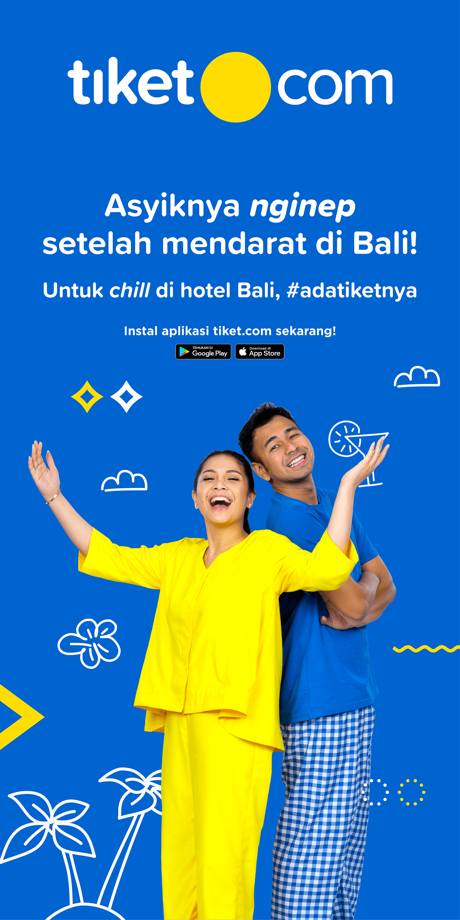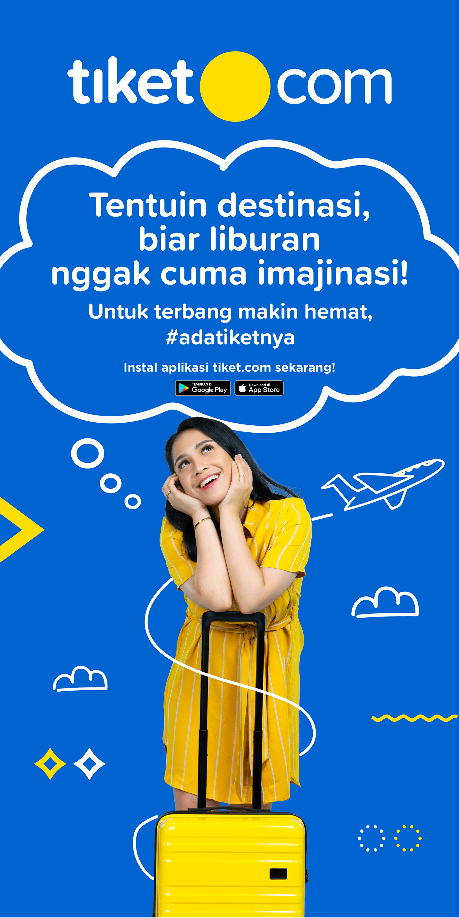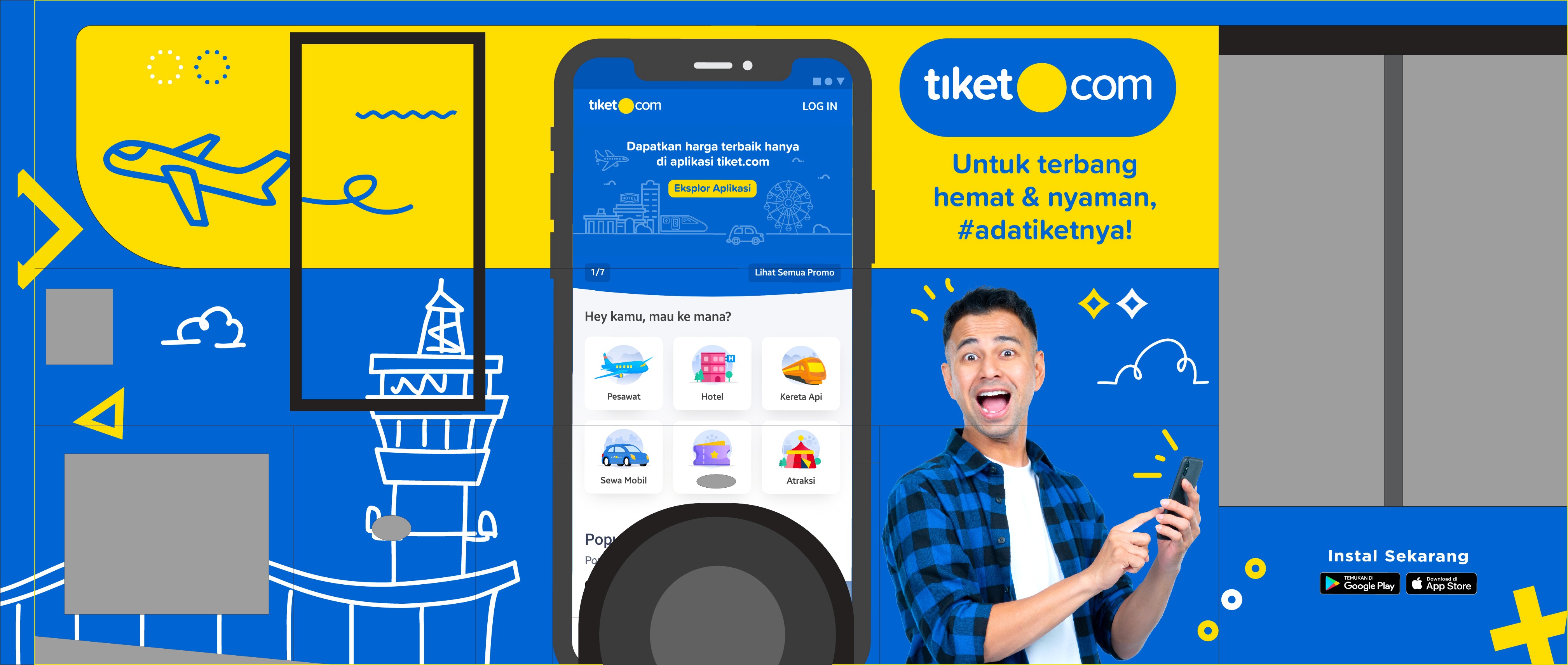 This page showcases a series of printed materials designed for tiket.com, reflecting a bold visual approach in travel and lifestyle branding. From posters and billboards to promotional assets, each piece stands out with tiket.com's signature vibrant colors, engaging copywriting, and a mix of illustration and photography that bring travel experiences to life. The creative process behind these materials involves close collaboration with external vendors, including; Photographers that capturing authentic moments that represent the tiket.com customer experience, Advertising agencies that aligning materials with marketing strategies and media placement to ensure effective messaging.